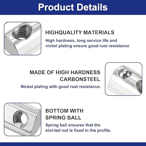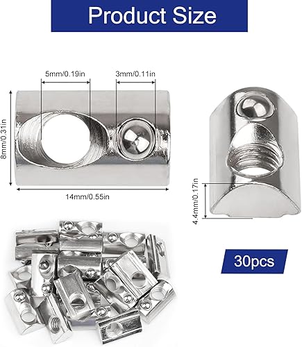 MAJOYLIFE 30 Stück Nutensteine M6 mit kugel,Gleitmutter mit Federkugel,Nut 8 T Nutsteine Schrauben für 30-Serie Alu Profil