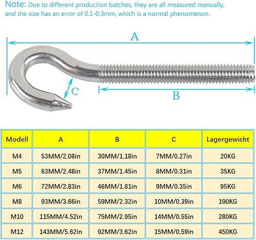 M10 304 Edelstahl-Hakenschraube Haken Bolzen Schraube Ringe mit einem runden Hakenschraube Verlängerte Schraube Packung mit 5 Stück