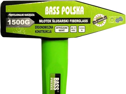 BASS POLSKA Schlosserhammer Hammer Fiberglas Robust Praktisch Profirierte Griff Nägelarbeite Montage Werkstatt Zuhause Solide Herstellung 10 Jahre Garantie Glasfasermaterial 1000 g