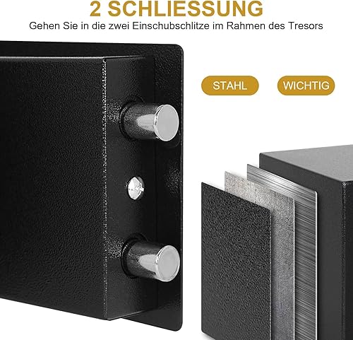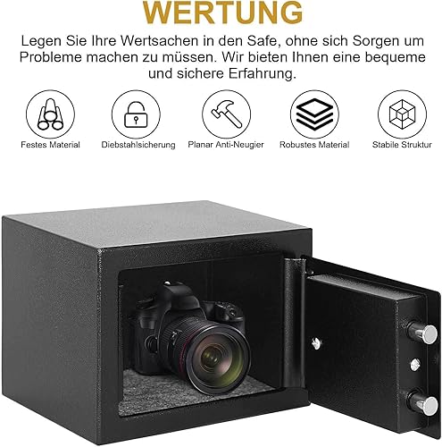 Youyijia 6.4L Tresor Safe Möbeltresor 23x17x17 cm Tresor für Zuhause Feuerfest Wasserdicht mit Schlüssel Doppelbartschloss Stahl Tresor für Dokumententresor Wand Safe Geldschrank