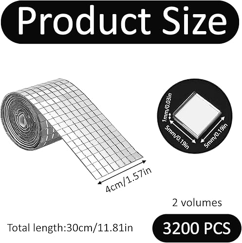 3200 Stück Spiegel Mosaik Selbstklebend,Mini Mosaikfliesen Selbstklebend,Mosaiksteine zum Basteln,5 x 5 mm Glas Spiegelmosaik für DIY Kunsthandwerk Dekoration - Quadrat,Silber