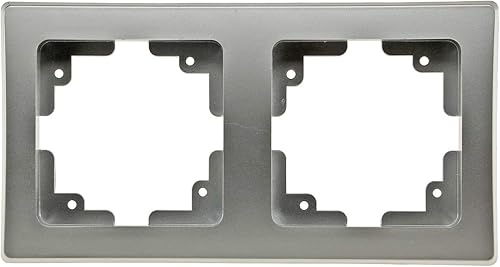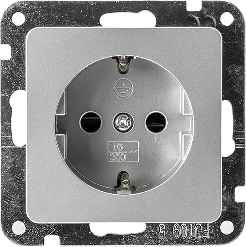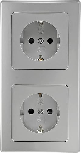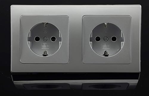 DELPHI Steckdose Unterputz 2-fach - Schutzkontaktsteckdose mit erhöhtem Berührungsschutz mit Rahmen Farbe Silber Grau