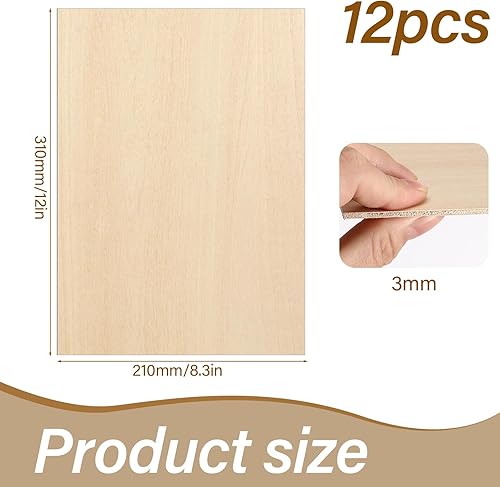 Tapvai 12 Stück A4 Linde Sperrholz,300 x 210 x 3 mm mehrschichtig Sperrholz,Holzplatten zum Basteln,3mm Laser Holz Lindensperrholz,für Bastelarbeiten,Holzzuschnitte,Modellbau (A4)