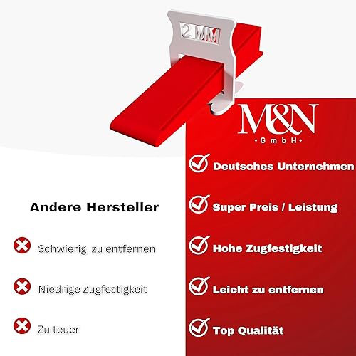 M&N Fliesen Nivelliersystem Set 1mm, 1,5mm, 2mm, 3mm Mega- Auswahl (100x 2mm Laschen, 50x Keile) - Fliesen-Verlegehilfe Werkzeug für Leien & Profi - Fliesenleger Fliesennivellierungssystem Zubehör