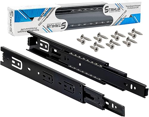 Stahlia Schubladenschienen (1 Paar) Vollauszug 45mm Länge: 350mm Schwarz Teleskopschiene Schubladenauszug Schrankauszug Schubladenführung Tragkraft 45kg