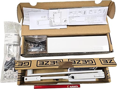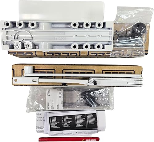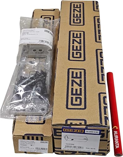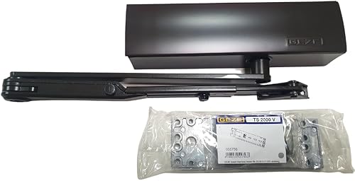 GEZE TS 2000 V BC Silber Gestängetürschließer für einflügelige Türen bis 1250 mm Flügelbreite mit Gestänge und Montageplatte/Set 3 in 1