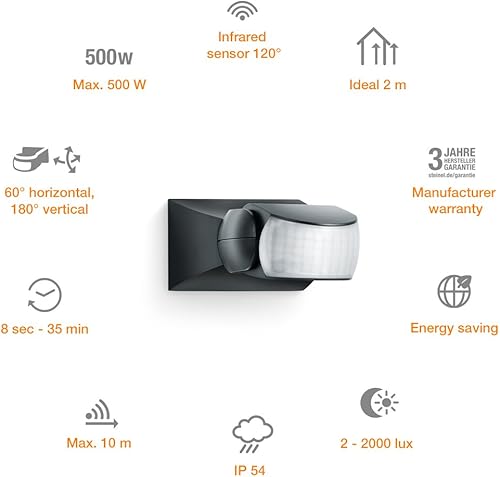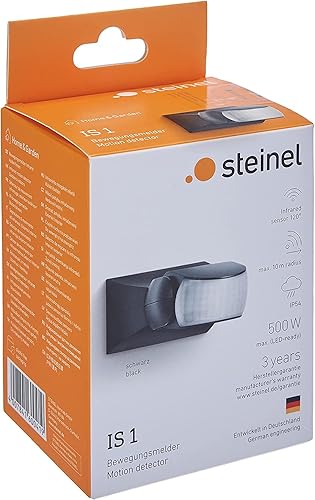 Steinel Bewegungsmelder IS 1 schwarz, innen und außen, 120° Bewegungsmelder, 10 m Reichweite, Auf- und Unterputz, IP54, (L x B x H) 120 x 80 x 50 mm