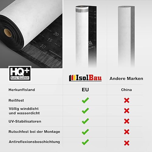 Isolbau Unterspannbahn Dach SPB 150, 37,5 m² Rolle (1,5 x 25 m) - Dampfdurchlässige Unterdeckbahn Dachfolie mit 150 g/m² Flächengrwicht - witterungsbeständig und wasserdicht