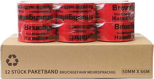 TK THERMALKING Klebeband - Packband - Paketband mit Hinweis auf Tape (Bruchgefahr - Achtung nicht werfen - Vorsicht zerbrechlich Glas - handle with care – Fragile) (1)