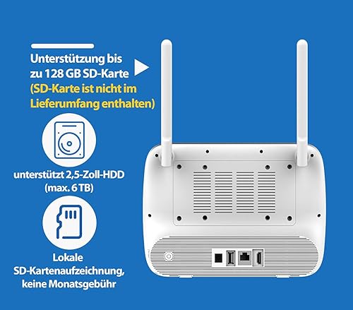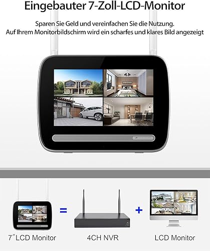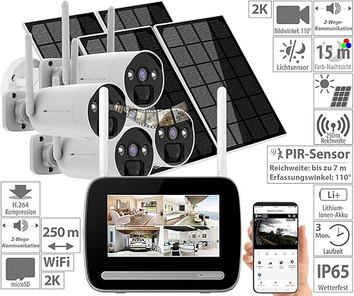 VisorTech Videorecorder: Funk-Überwachungs-Set: Monitor-Rekorder + 4X 2K-Solar-Kamera, PIR, App (Überwachungskamera mit Infrarot, WLAN Überwachungskamera Solar, Überwachung)