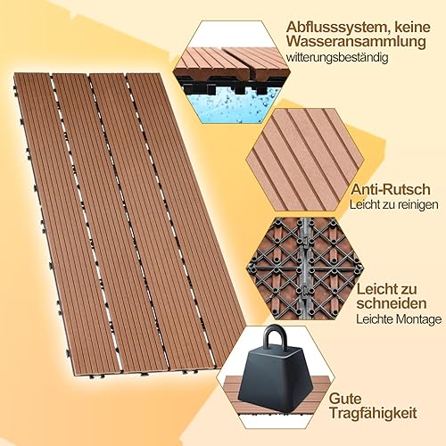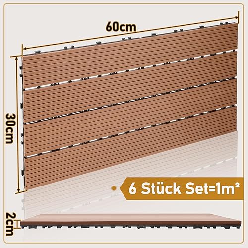 Lospitch WPC Terrassenfliesen, 30x30cm Balkon Bodenfliese 66 Stück für 6m², Terrassendielen Klickfliesen Wetterfest, Rutschfest, Pflegeleicht, Gartenfliesen mit Klick-System, Anthrazit