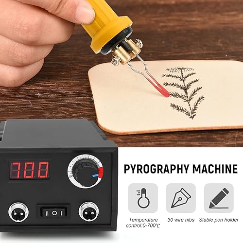 Pyrographie Maschine mit 2 Stifte, Luriseminger 60W Holzverbrennungs Kit mit 30 Pyrography Drahtspitzen, 0-700℃ Einstellbare Temperaturregelung Brandmalerei Lötkolben Set für Holz Leder Bambus
