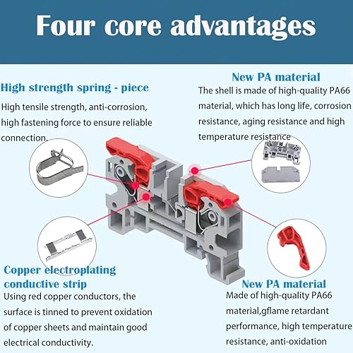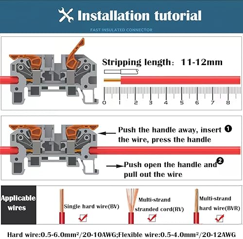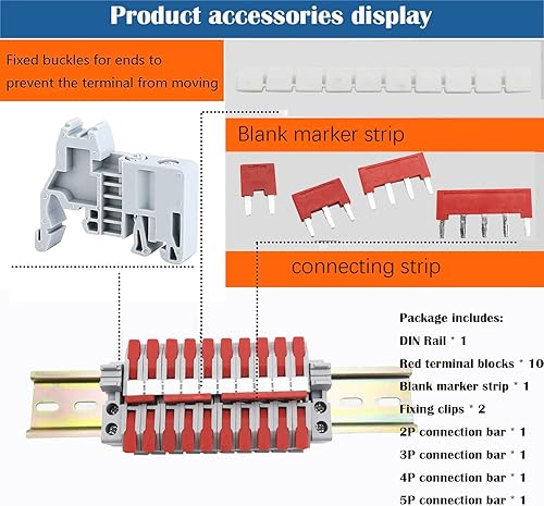 Reihenklemmen Hutschiene, CTRICALVER 10 Pcs Kompakte Steckklemme (rot), Mit Markierungsstreifen, Verbindungsleisten (2/3/4/5 Pin) und Sicherungsclip