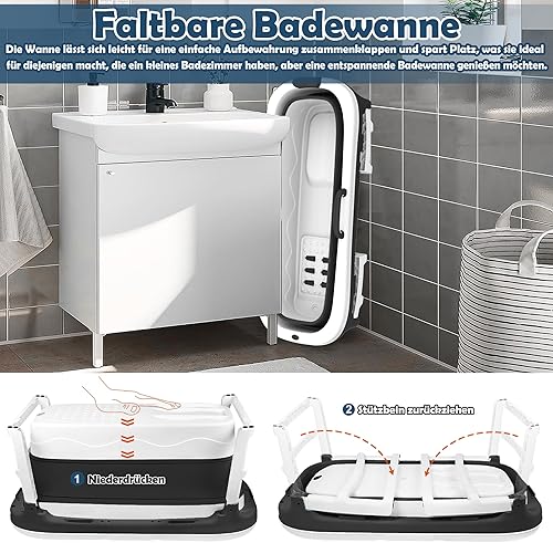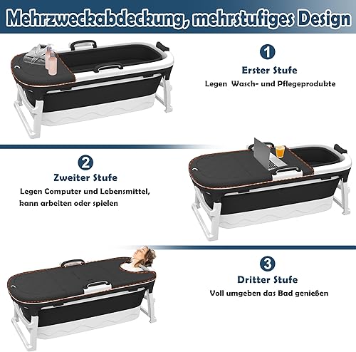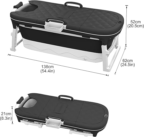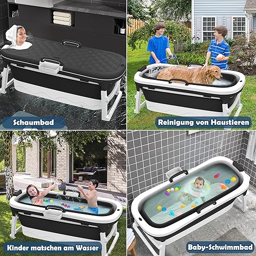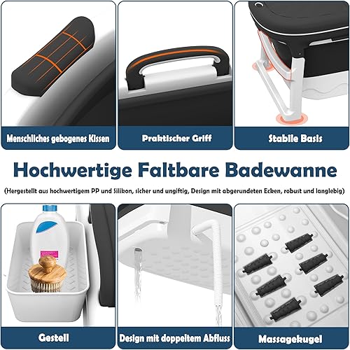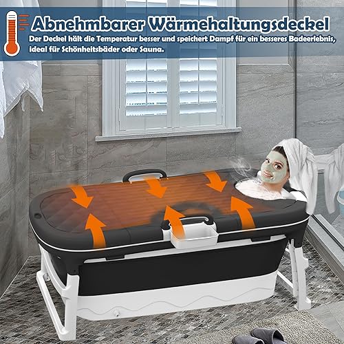 UISEBRT 138X62X52cm Faltbare Badewanne Erwachsene, Tragbare Klappbare Badewanne mit Abdeckung & Massagerollen Seifenkorb, Foldable Bathtub für Badezimmer und DuscheSchwarz, Ohne Badewannenmatte