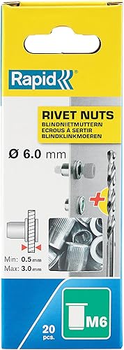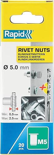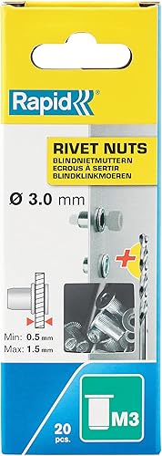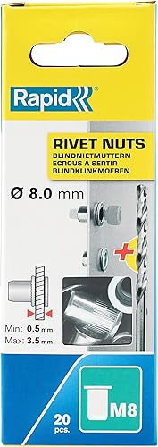 Rapid Nietmuttern M8, 0,5-3,5mm Klemmbereich, 20 Stk. Gewindenieten Stahl, Set inkl. Bohrer, für Nietmutternzange