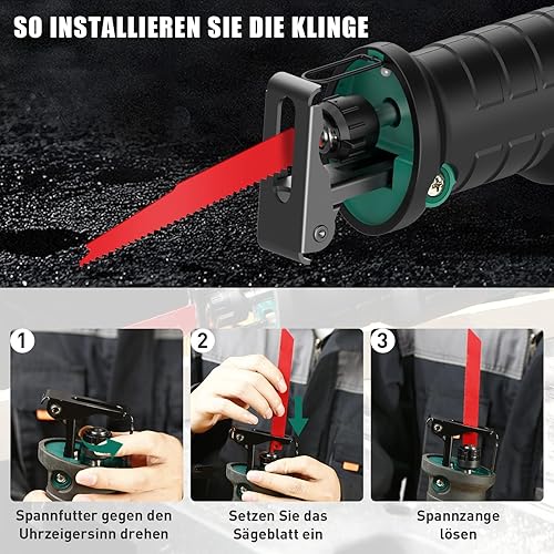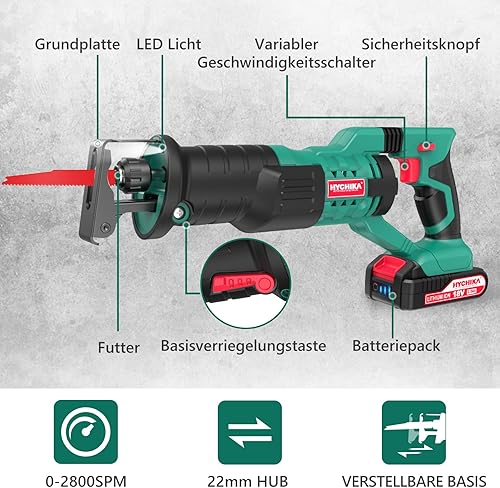 HYCHIKA Säbelsäge, 18V Akku Universalsäge, Reciprosäge mit 2x2.0Ah Batterien, mit variabler Drehzahl von 0-2800 SPM, 2 Sägeblätter, Schnellladegerät, LED Licht,Ideal zum Schneiden von Holz und Metall