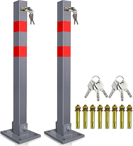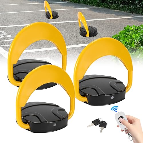 Ikodm 1 Stück Parkplatzsperre Klappbar Parkpfosten Absperrpfosten mit Fernbedienung und 2 Schlüssel, Antikollision 180° IP67, 20M Fernsteuerung, 4T Tragfähigkeit, Gelb