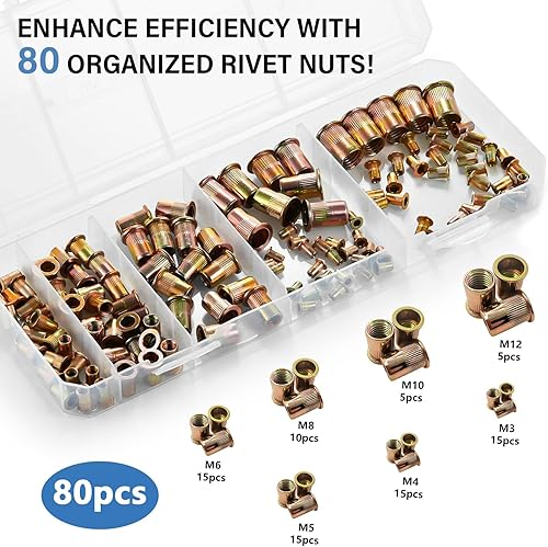 AKKTOL Nietmutternzange Set inkl. 80 Nietmuttern M3-M12, Dorne, Box & Schutzgehäuse - Robuste Gewindenieten Zange Set für Autoreparatur & Metallbearbeitung