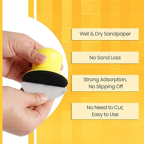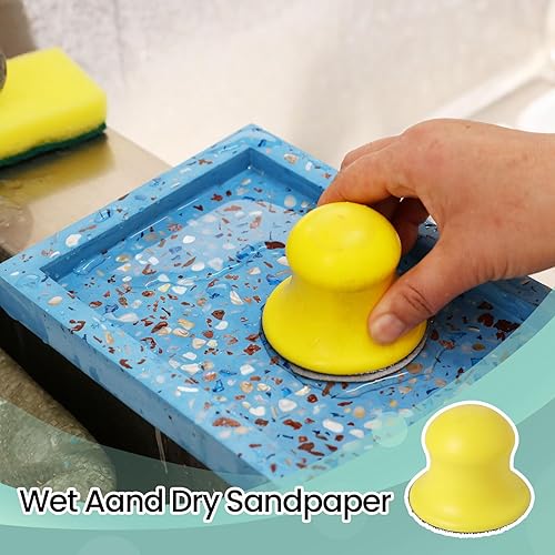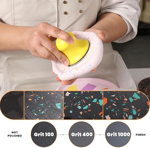 BOOWAN NICOLE Nass-Trockene Hand Schleifklotz für Jesmonite Beton Terrazzo, Runde Haken und Schleife Schleifmaschine mit 100/400/1000 Grit Sandpapiere für Handwerk Polieren (A0167+A0337+A0338+A0339)