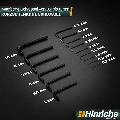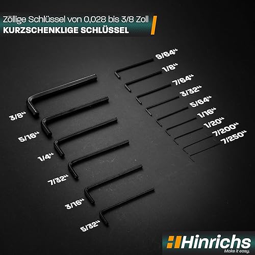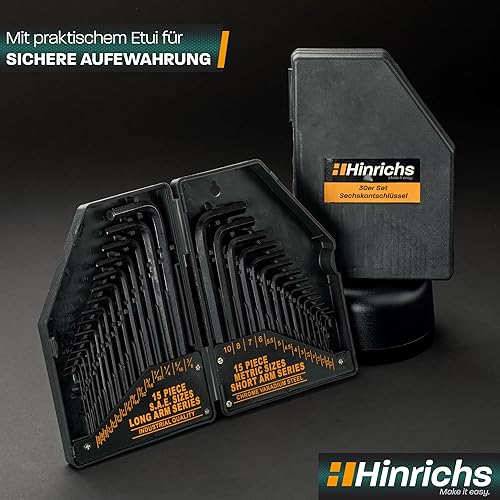 Hinrichs 30 tlg. Innensechskantschlüssel Satz Zoll und Metrisch - Innensechskant Satz mit Kugelkopf - Sechskantschlüssel Set Fahrrad - korrosionsbeständiges Schlüssel Set – Hex Key, Allen Keys