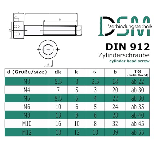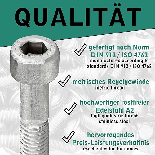 Zylinderschraube mit Innensechskant nach Norm DIN 912 / ISO 4762 Vollgewinde rostfreier Edelstahl A2 V2A Zylinderkopfschraube (M6 x 50 mm, 100 Stück)