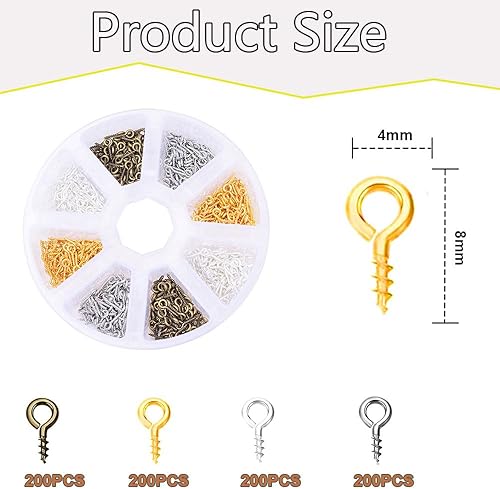 800 Stück Schraubösen Ösenschraube Kleine Augennadeln Ringschraube Set 4 × 8 mm Mini Schaf Ösenschrauben Metal Augenschrauben Ösenstifte Handarbeit für DIY Art Crafts Schmuck (4 Farben)