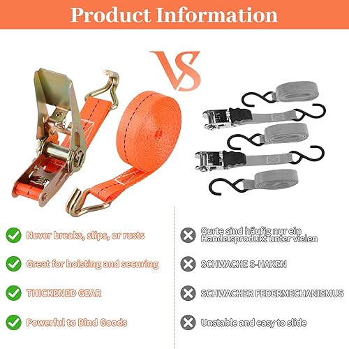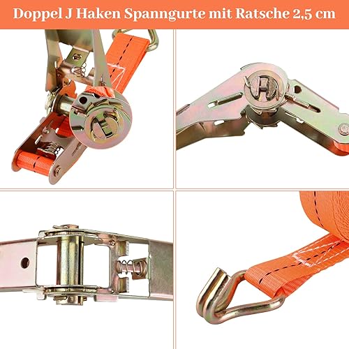 JAMITE 4 Stück Spanngurte,4x1000KG Ratschengurte Zurrgurte,5.5m lang,25 mm breit mit Ratsche und Haken Spannriemen Befestigungsriemen,Enorm Robuste Zurrgurte Geeignet für Feste Ladung