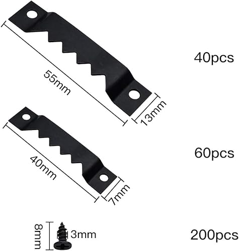 TXErfolg 100 Stück Bildaufhänger 2 Größen(40x7mm 55x13mm) Sägezahn mit 200 Schrauben Doppel-Loch Bilderrahmenaufhänger stabil Hängehaken für Bilderrahmen Keilrahmen Uhren Gemälde und Kunsthandwerk