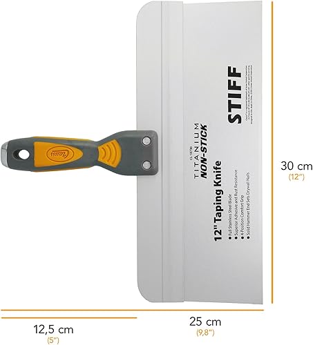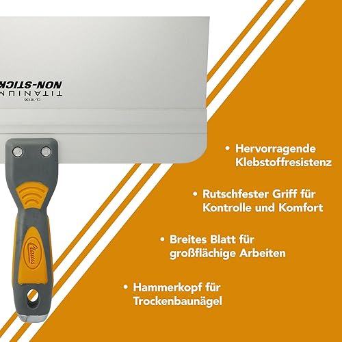 Clauss Spachtel 12' (30,5 cm) mit breiter Klinge in Profiqualität | Titanium Bonded Edelstahlklinge mit Antihaftbeschichtung | rutschfester, ergonomischer Griff | ideal als Flächenspachtel | 18736