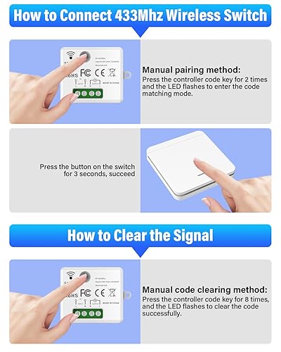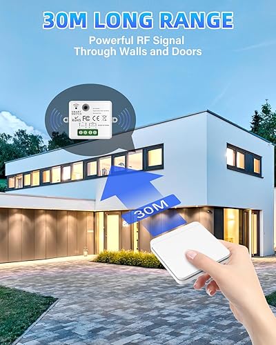 Apkezel Funkschalter 230v, RF 433Mhz Funk Lichtschalter, lichtschalter mit fernbedienung Reichweite von 30 Metern, für Lampen bis 1500W (1 Empfänger und 2 Schalter)