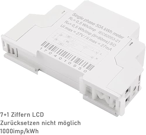 LCD digitaler Wechselstromzähler Stromzähler Wattmeter mit Leistungsanzeige 5(50) A für Hutschiene mit S0 Schnittstelle