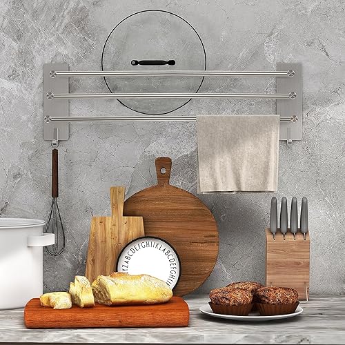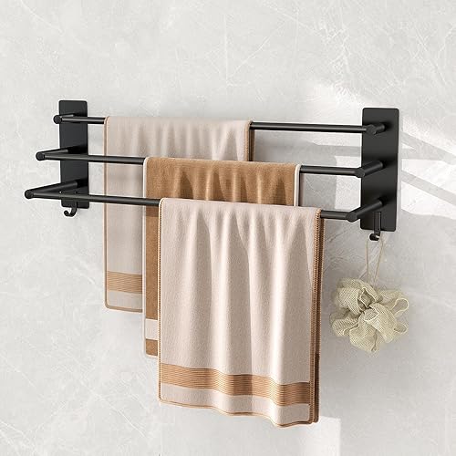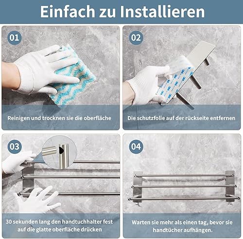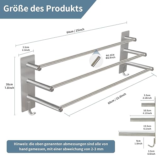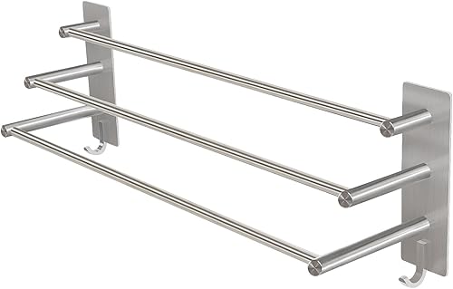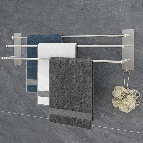 Vista Handtuchhalter 3 Stangen ohne Bohren 75cm SUS304 Edelstahl Selbstklebende Handtuchhalter Silber Badezimmer Handtuchhalter mit Zwei Haken für Küche, Bad, Schlafzimmer Silber