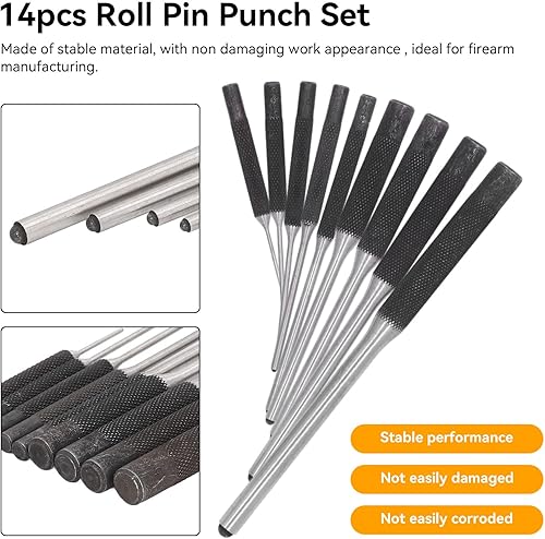 14-teiliges Spannstift-Durchschlag-Set, Büchsenmacher-Durchschlag zum Entfernen von Reparaturwerkzeugen mit Hammer für Automobil, Uhren, Schmuck und Handwerk