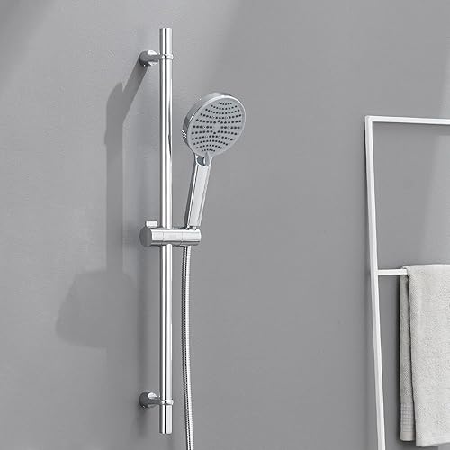 Ulytid Edelstahl Duschstange mit Brause 70cm, Bad Duschset mit Duschkopf mit Schlauch und Halterung, Brausestangenset für Dusche und Bad, Duschstange mit Duschbrause mit 3 Strahlarten, Chrom