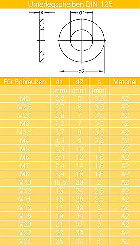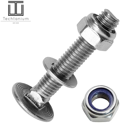 Techtanium® Schlossschrauben M8 x 20/20 mm inkl. Sicherungsmuttern und Unterlegscheiben M8 aus Edelstahl A2 (5 Stück) | Schrauben | Muttern | U-Scheiben | DIN 603 & DIN 985 & DIN 125