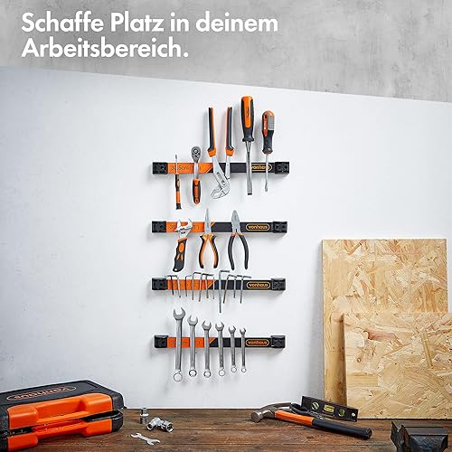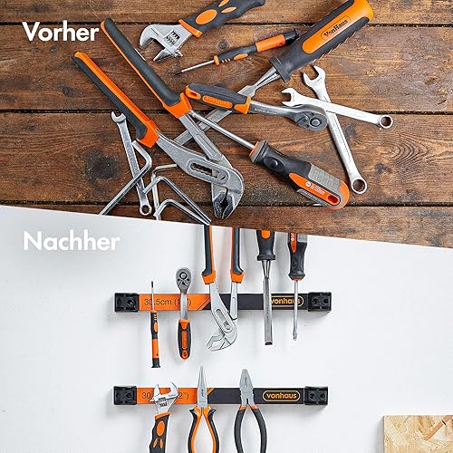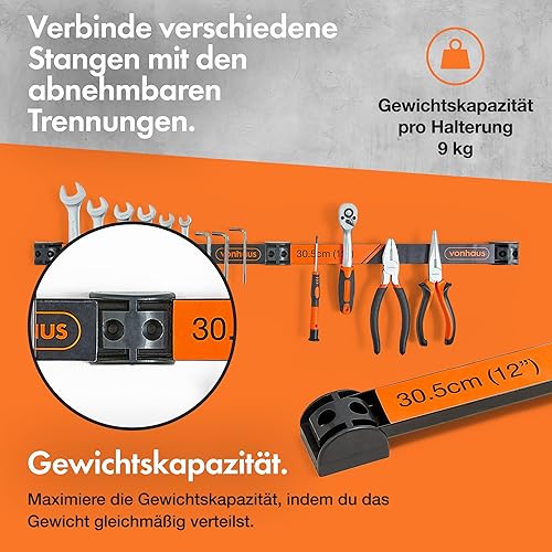 VonHaus 4 Stck 30,5 cm Magnetische Werkzeug Wandhalterung – Robuste Magnetleiste für Werkzeugwand – Magnetleiste Werkzeug Set für Schraubenschlüssel- und Schraubenzieher - 1.8 kg Kapazität