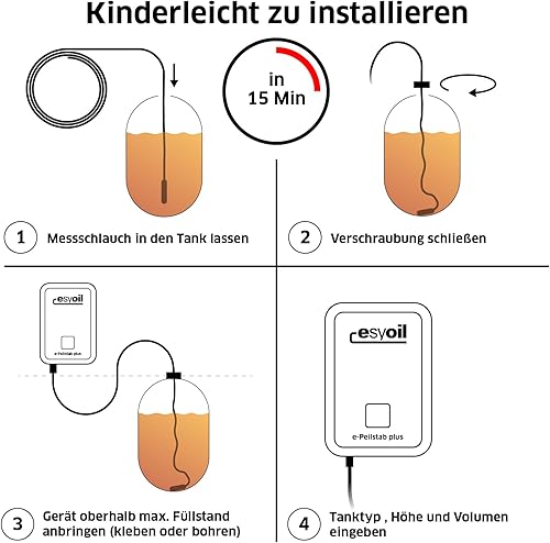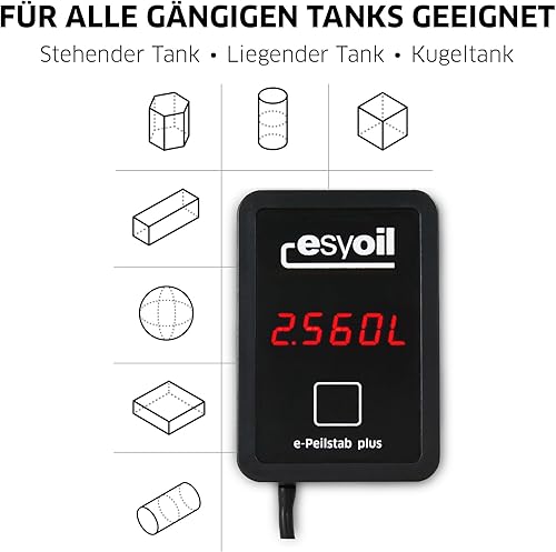esyoil e-Peilstab: Digitale Füllstandsanzeige für Heizöltank/Öltank | Anzeige in Liter, Zentimeter und Prozent | einfache Montage | kein WLAN erforderlich
