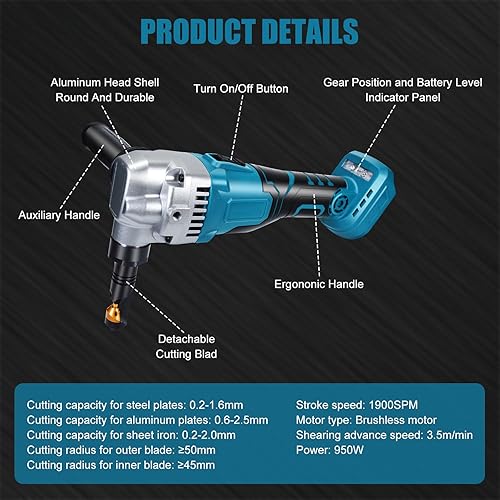 Akkubetriebener Metallknabber Kompatibel mit Makita 18v Max Akku (Akku Nicht Im Lieferumfang Enthalten), 3 Stufige Bürstenlose Elektro-Metallschere Blechknabber Zum Schneiden Von Edelstahl, Aluminium