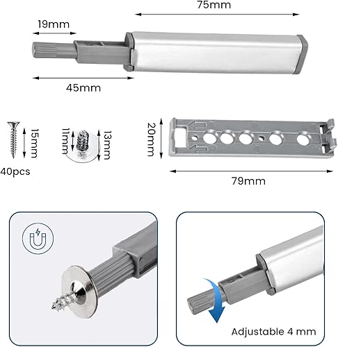 10 Stück Push to Open Drucktüröffner, Schranktür Dämpfer Schrank Ferderschnäpper, Türdämpfer Softclose für Schrank Schubladen (mit 40 Schrauben)