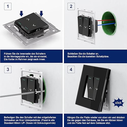 PULSAR Rolladentaster Unterputz mit Glasramen Jalousietaster Glas Weiß Rollladentaster zur Unterputzmontage Rollo/Rouleau/Jalousette/Fensterschutz Taster