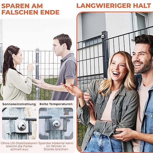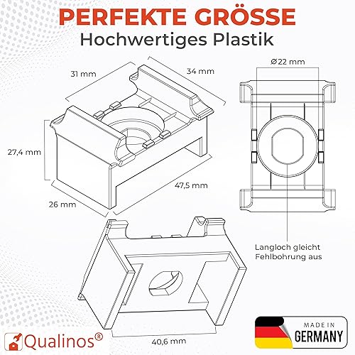 Qualinos 10x hochwertige Doppelstabmattenzaun Befestigung Zubehör Zaunhalter UV stabilisiert Schwarz 9005 für 40x60mm Zaunpfosten. Doppelstabmatten Halter, Zaunhalter Made in Germany