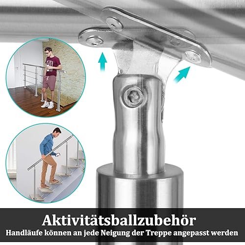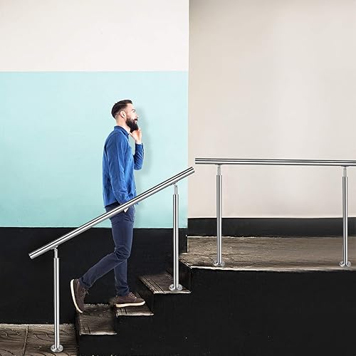 Aufun Edelstahl Handlauf 80cm Treppengeländer Innen und Außen mit 2 Pfosten für Treppen, Brüstung, Balkon (80cm, 0 Querstreben)