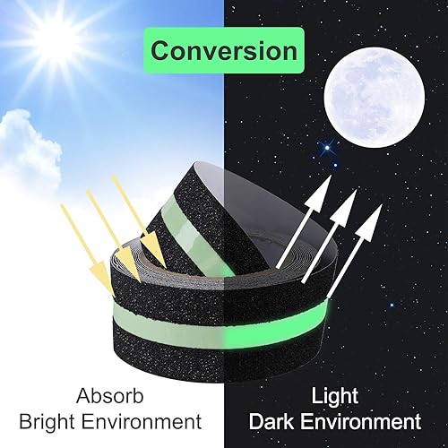 Anti-Rutsch-Klebeband Sicherheit Klebeband Glow in Dark Leuchtband Streifen für Treppen Schritte Grip Tape Band Selbstklebend für Innen oder Außen (5cm x 5m)