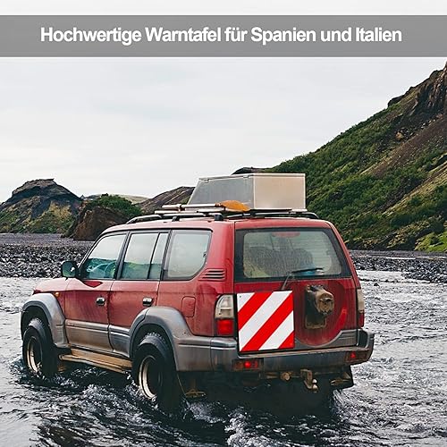 Daromigo 2 in 1 Warntafel für Italien und Spanien, 50x50cm Standardgröße Robust und Langlebig, Aluminium, Rot Weiß Warnschil für Wohnmobil, Heckträger, Fahrradträger