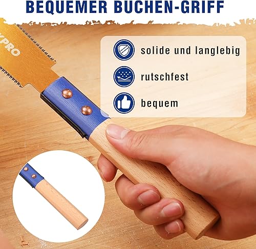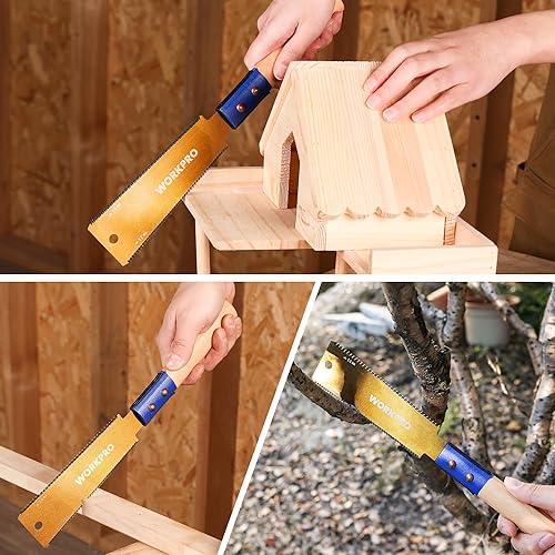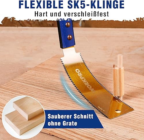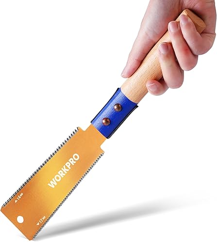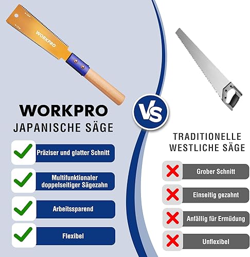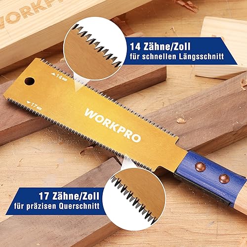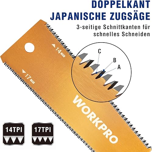 WORKPRO 150mm Japansäge mit 0,6mm SK5 Klinge und Holzgriff, Doppelte Kante japanische Handsäge 17TPI/14TPI, Profi Feinsäge Zugsäge für Holzbearbeitung Heimwerker Zimmermann