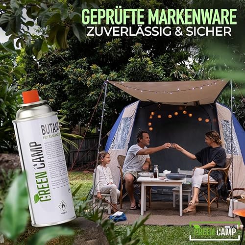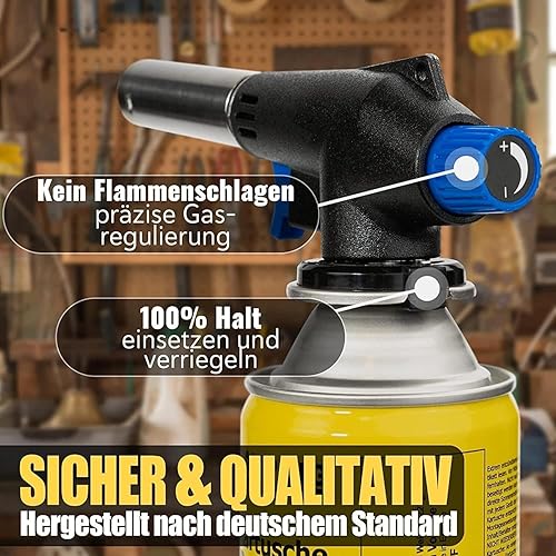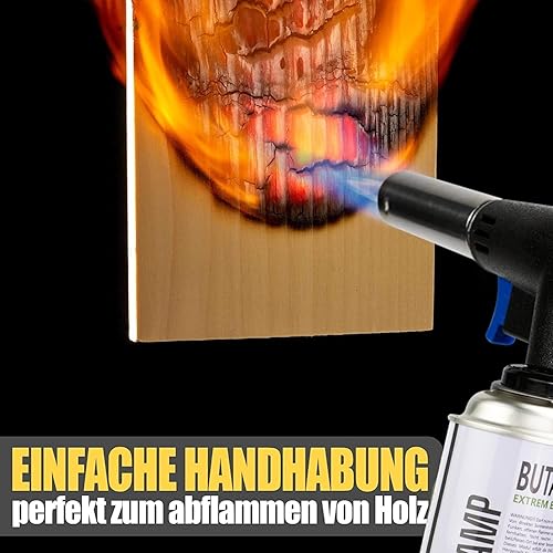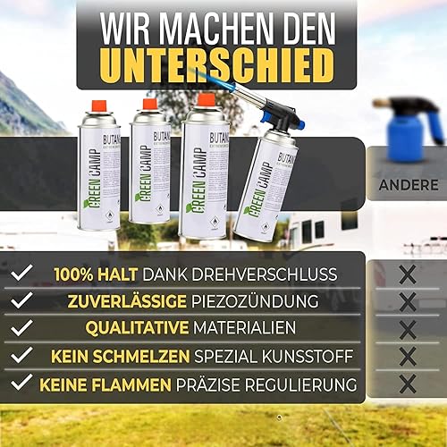 GREEN CAMP ® Gasbrenner mit Kartusche 227g – Schweißbrenner max. 1300°C Temperatur – Lötlampe mit Piezozündung – Bunsenbrenner Küche -Küchenbrenner (4x Gaskartuschen)