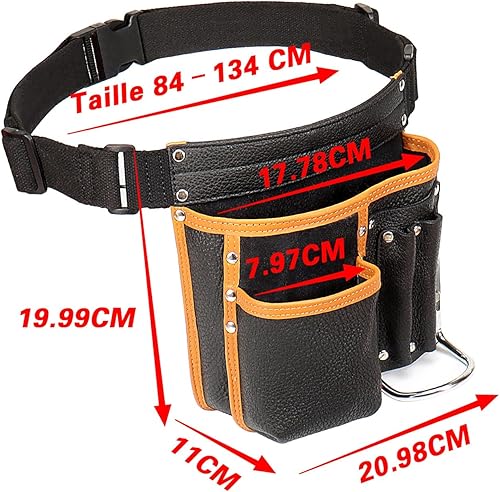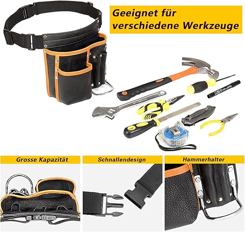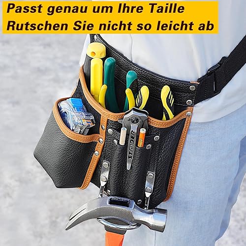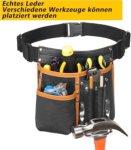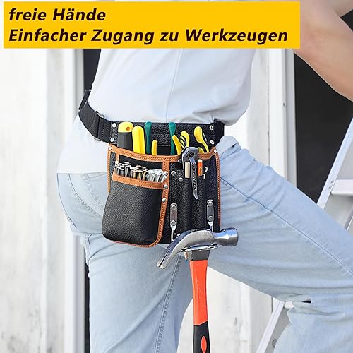 quipuda Werkzeuggürtel Herren, Echtes Leder Werkzeug Gürteltasche, Mit verstellbarem Hüftgurt, Werkzeugtasche mit Hammerhalter für Tischler, Gärtner, Rahmenbauer, Dachdecker, Handwerker