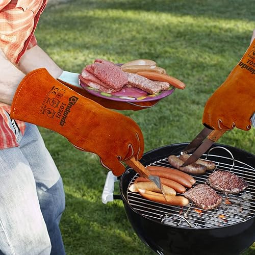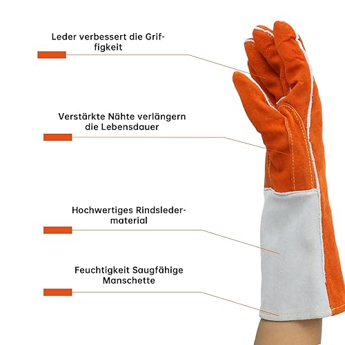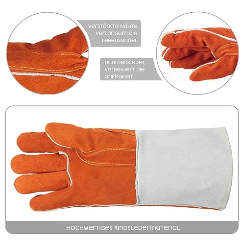 ANDANDA Schweißhandschuhe, Grillhandschuhe, Hitzebeständig und verschleißfest -Kaminhandschuhe Feuerfest für Schweißer/Kamin/BBQ/Gartenarbeit/Grillen/Küche/Backofen/Mikrowellenherd ,1 Paar