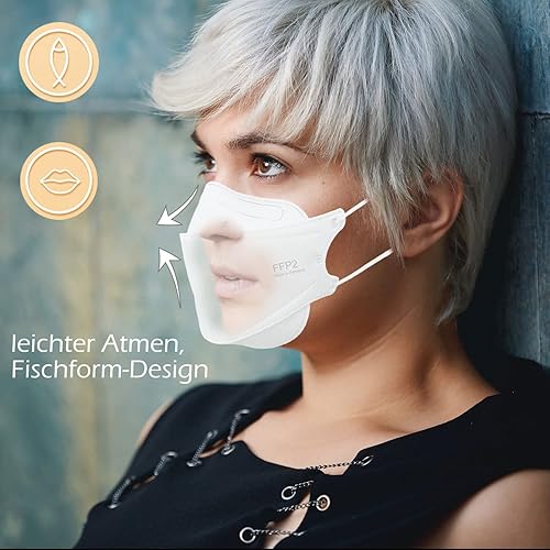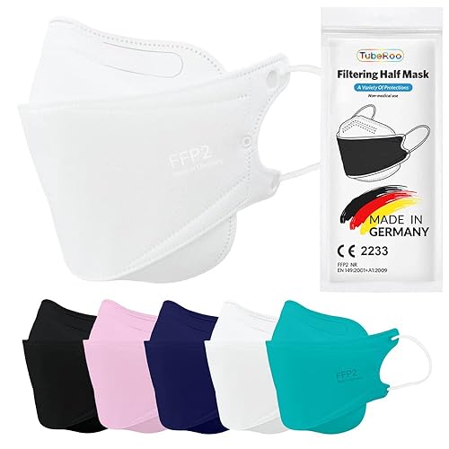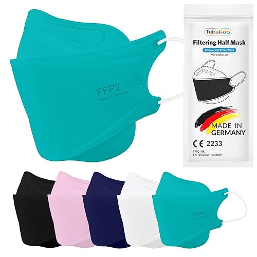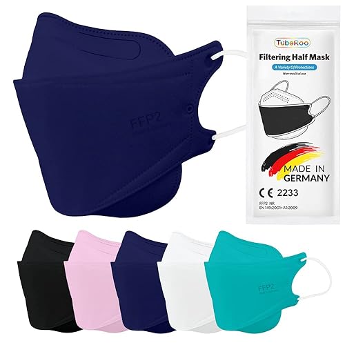 TubeRoo FFP2 Maske blau dunkelblau Fischform, 20 Stück Masken aus Deutschland, Made in Germany, weiche Ohrschlaufen, Atemschutzmaske, Mundschutz