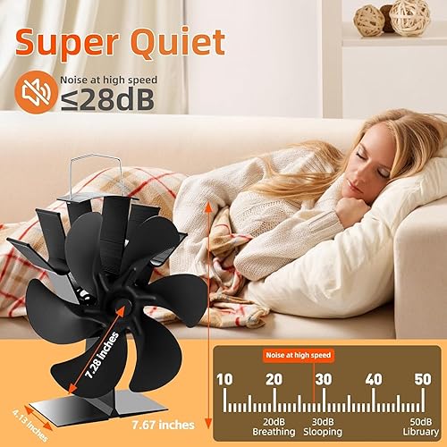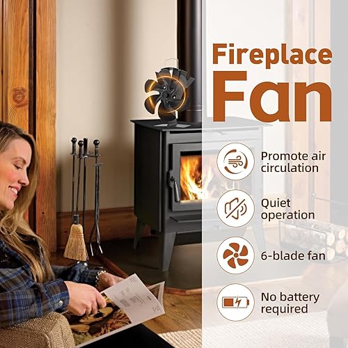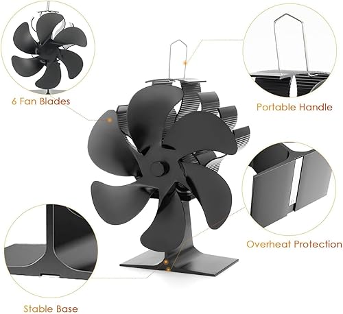 Yungeln Kaminventilator mit 6 Blättern Ofenventilator Ohne Strom Wärmebetriebener Ventilator Ofenventilator Kaminventilator Kamin Ventilator für Holzbrenner Kamin